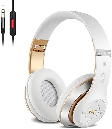 Auriculares Cerrados Inalámbricos 6S, Alta fidelidad Estéreo Auriculares Estéreo Inalámbricos Plegables, Micrófono Incorporado, Micro SD/TF, FM (para iPhone/Samsung/iPad/PC) (Blanco y Oro) : Amazon.es: Electrónica
