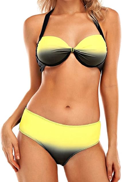 ✓ Comprar Bikini Elegante Traje de Baño Conjunto Bañador Halter Sexy Sólido para Mujer Ropa de Playa Traje de Baño Bikini Sets Talla Grande (Amarillo Negro, S) : Ropa en Amazon.es
