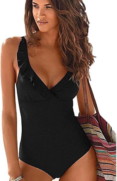 ✓ Comprar Traje de Baño Mujer de Una Pieza Volante Cuello en V Ropa de Baño Playa Control del Vientre Monokini : Ropa en Amazon.es