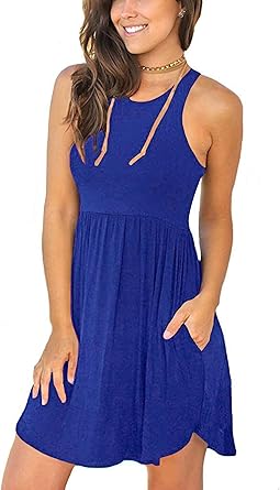 AUSELILY Vestido Liso Suelto Sin Mangas para Mujer con Falda Corta Casual con Bolsillo(Azul Real,Small) : Amazon.es: Ropa