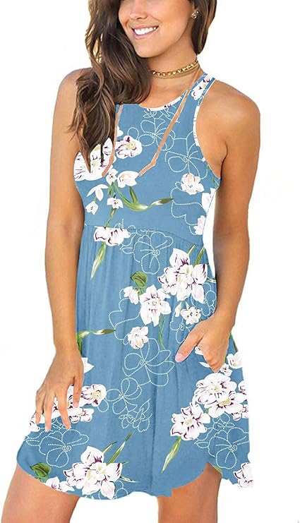 AUSELILY Vestido Liso Suelto Sin Mangas para Mujer con Falda Corta Casual con Bolsillo(Floral Azul Claro,Small) : Amazon.es: Ropa